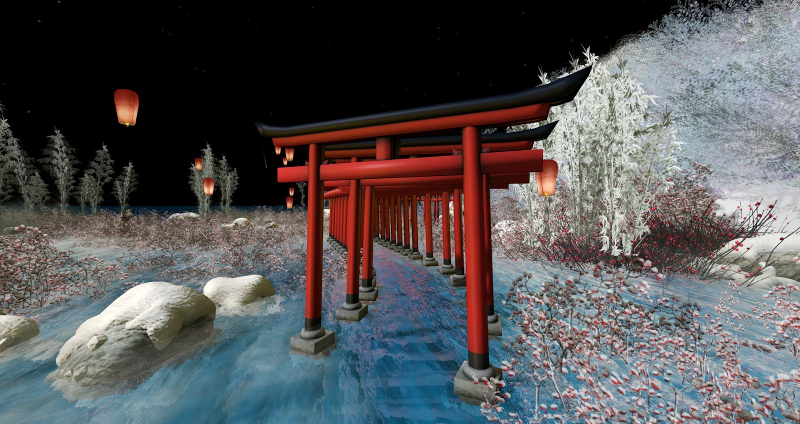At ground level PeTOu is a winter snow covered sim full of photographic opportunities; a snowman here, a huge snowglobe there, a house next and so on. I wish I could spend more time exploring but to do so would risk this blog never being completed.